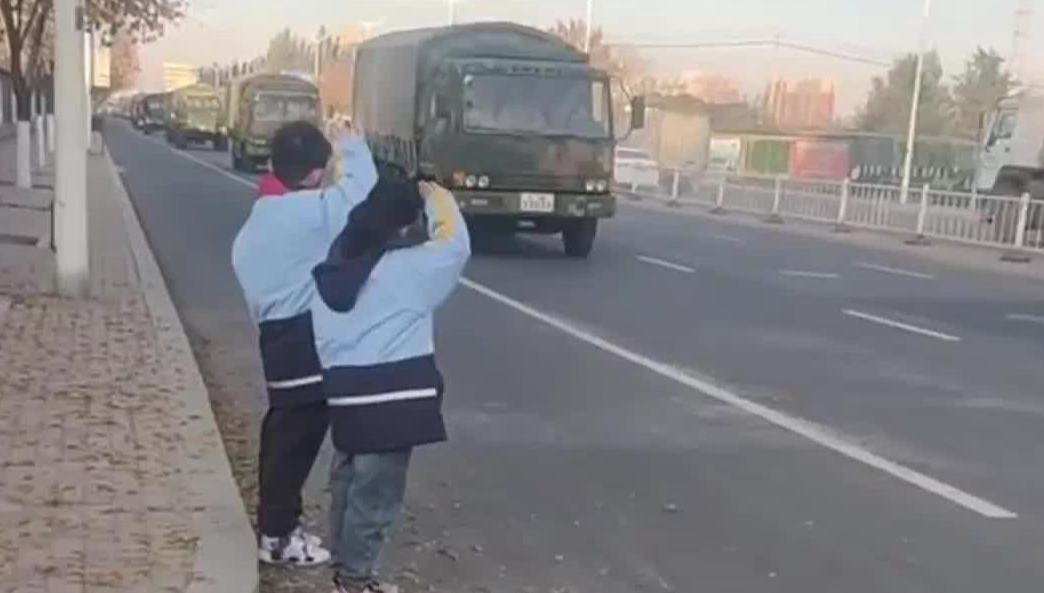 小學生遇軍車駐足敬禮 解放軍戰(zhàn)士鳴笛回禮