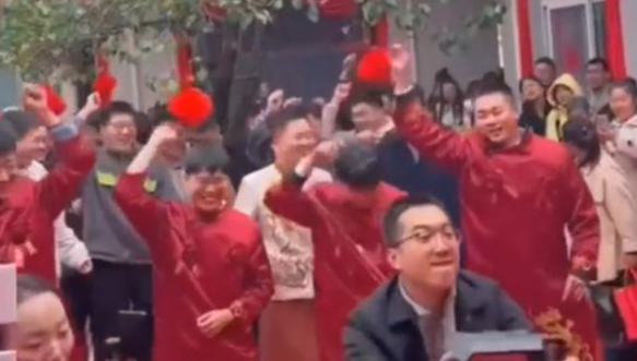 新郎接親伴郎熱舞亮相 發(fā)小手持音響領舞排面拉滿